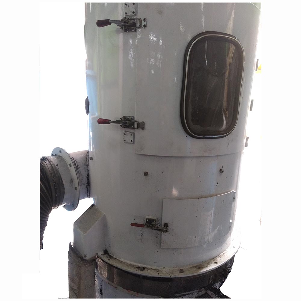 این دستگاه جهت حمع اوری پودر فلوک معلق در فضای اطراف دستگاه تولید نوار درز گیر های خودرو برای کارخانه ی پارت لاستیک مشهد ساخته شد . اساس کار این دستگاه به این صورت است که آب به صورت قطرات ریز در فضای دستگاه معلق شده و هوای داخل دستگاه تولیدی مکیده میشود و پودر فلوک به قطرات آب چسبیده و قطرات آب سنگین شده و به ظرف زیر دستگاه وت فیلتر ریخته میشود